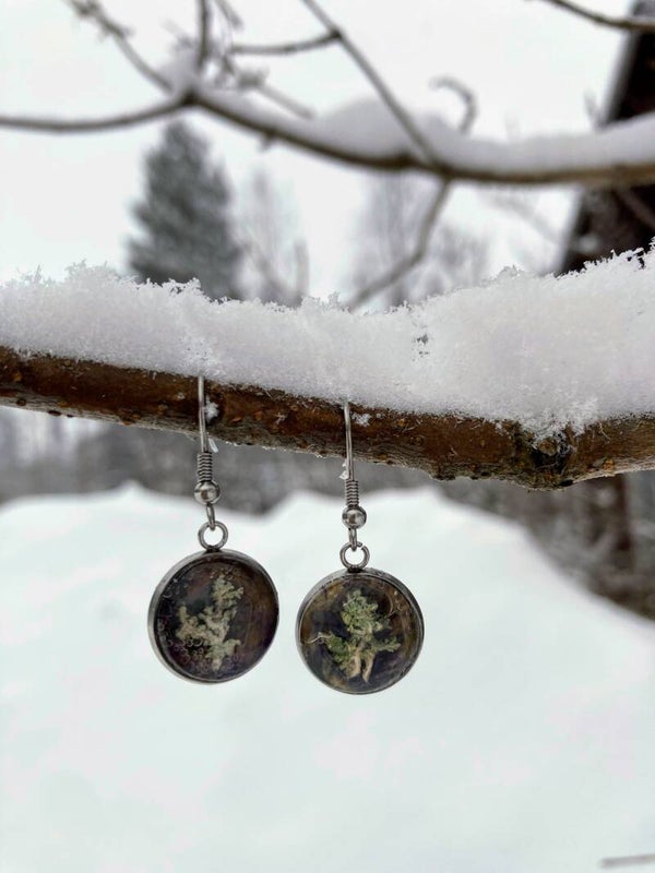 Harmaaporonjäkälä ritarinkannuksella S ruskeanvioletti korvakoru