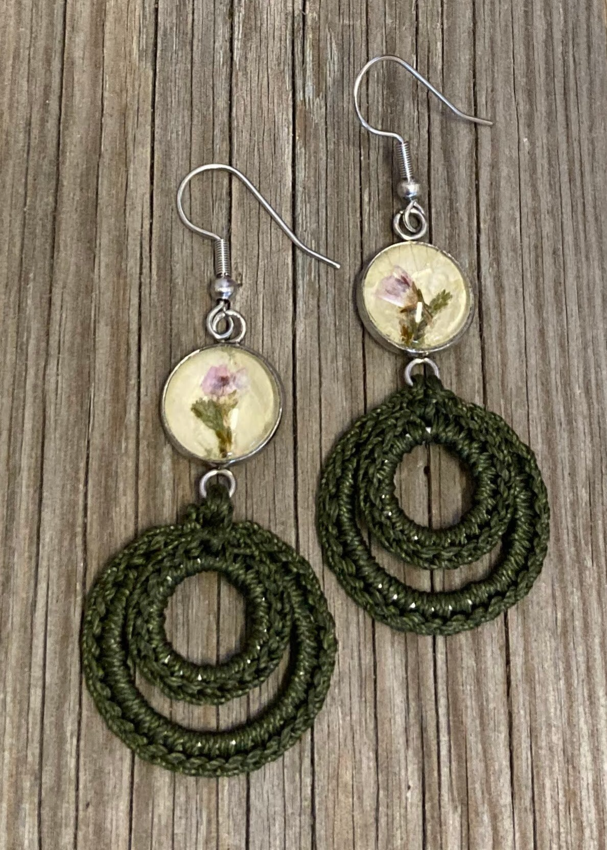 Materiaali: lasi, kirurginteräs, tärkätty nylonlanka, kuivattu kanerva ja ruusunlehti