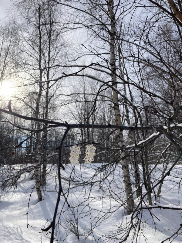 Materiaali: puuvillalanka, kirurginteräs, lasihelmet