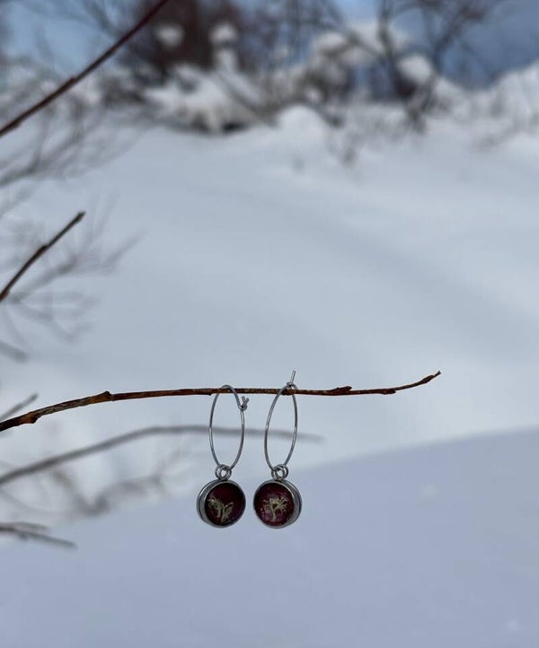 Materiaali: lasi, kirurginteräs, kuivattu jäkälä ja ruusunterälehti